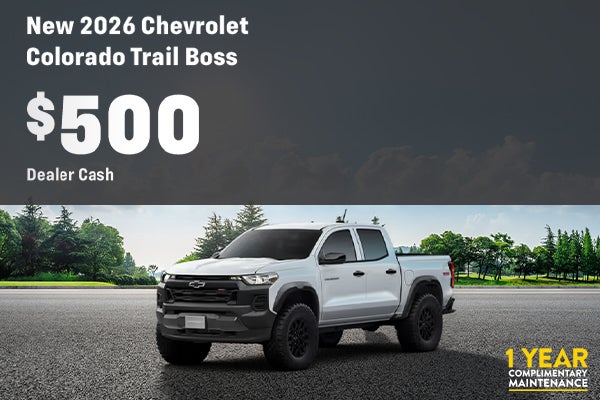 VIN: 1GCPTEEK7T1202099. MSRP: $43,070. $500 Dealer Cash. With approved credit; not all will qualify; on select models. 5 vehicles in stock at this price. One year of complimentary maintenance includes one oil change and one tire rotation. Good on select new and used vehicles. See the dealer for complete maintenance details. Advertised Price EXCLUDES all optional dealer offered items, accessories, or product addendums optionally selected by the purchaser, applicable official taxes and fees, and a $436 documentary fee. Offer Expires 05/01/2026.