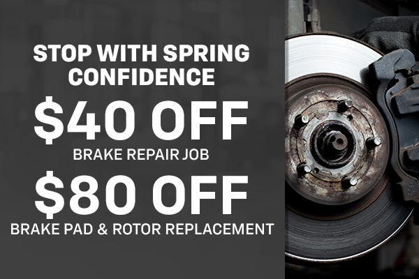 Plus tax and applicable fees. Discounts apply to qualifying brake services; additional parts or repairs extra. May not be combined with any other offer. Must present coupon at time of service. See dealer for full details. Offer Expires 04/30/2026.