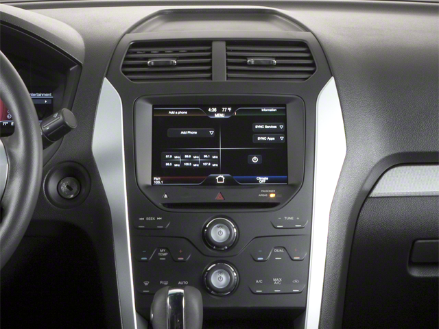 2013 Ford Explorer XLT FWD 6-Speed Automatic with Select-Shift 3.5L 6-Cylinder SMPI DOHC 18 Painted Aluminum Wheels, 3.39 Axle Ratio, 3rd row seats: split-bench, 4-Wheel Disc Brakes, 6 Speakers, ABS brakes, Air Conditioning, Alloy wheels, AM/FM radio: SiriusXM, Bumpers: body-color, CD player, Delay-off headlights, Driver door bin, Driver vanity mirror, Dual front impact airbags, Dual front side impact airbags, Electronic Stability Control, Four wheel independent suspension, Front anti-roll bar, Front Bucket Seats, Front Center Armrest, Front fog lights, Front reading lights, Fully automatic headlights, Heated door mirrors, Illuminated entry, Knee airbag, Low tire pressure warning, Occupant sensing airbag, Outside temperature display, Overhead airbag, Overhead console, Panic alarm, Passenger door bin, Passenger vanity mirror, Power door mirrors, Power driver seat, Power passenger seat, Power steering, Power windows, Radio data system, Radio: AM/FM Stereo w/Single CD/MP3 Capable, Rear air conditioning, Rear anti-roll bar, Rear Parking Sensors, Rear reading lights, Rear window defroster, Rear window wiper, Remote keyless entry, Roof rack: rails only, Security system, Speed control, Speed-sensing steering, Speed-Sensitive Wipers, Split folding rear seat, Spoiler, Steering wheel mounted audio controls, Tachometer, Telescoping steering wheel, Tilt steering wheel, Traction control, Trip computer, Turn signal indicator mirrors, Unique Cloth Bucket Seats, Variably intermittent wipers.