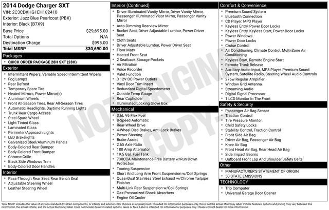 17 x 7.0 Painted Aluminum Wheels, 4-Wheel Disc Brakes, 6 Speakers, ABS brakes, Air Conditioning, Alloy wheels, AM/FM radio: SiriusXM, Anti-Lock 4-Wheel Disc Brakes, Anti-whiplash front head restraints, Auto-dimming Rear-View mirror, Automatic temperature control, Base Cloth Seats, Brake assist, Bumpers: body-color, CD player, Compass, Delay-off headlights, Driver door bin, Driver vanity mirror, Dual front impact airbags, Dual front side impact airbags, DVD-Audio, Electronic Stability Control, Four wheel independent suspension, Front anti-roll bar, Front Bucket Seats, Front Center Armrest, Front dual zone A/C, Front fog lights, Front reading lights, Fully automatic headlights, Garage door transmitter: HomeLink, Heated door mirrors, Heated front seats, Illuminated entry, Knee airbag, Leather Shift Knob, Low tire pressure warning, Occupant sensing airbag, Outside temperature display, Overhead airbag, Overhead console, Panic alarm, Passenger door bin, Passenger vanity mirror, Power door mirrors, Power driver seat, Power steering, Power windows, Quick Order Package 28H SXT, Radio data system, Radio: Uconnect 8.4 CD/DVD/MP3, Rear anti-roll bar, Rear reading lights, Rear seat center armrest, Rear window defroster, Remote keyless entry, Speed control, Speed-Sensitive Wipers, Split folding rear seat, Steering wheel mounted audio controls, SXT Badge, Tachometer, Telescoping steering wheel, Tilt steering wheel, Traction control, Trip computer, Variably intermittent wipers.