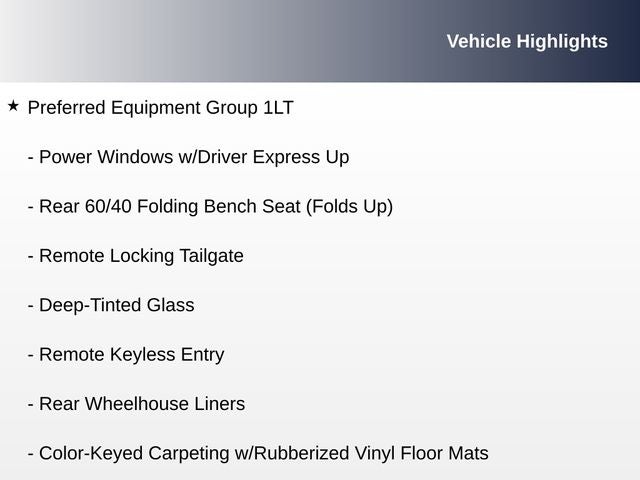 This Silverado's impressive list of features sets it apart from the competition. The ALL STAR EDITION adds desirable amenities like the Remote Vehicle Starter System, Rear Vision Camera, and LED front fog lamps. The Trailering Package equips this truck with the capability to tow with confidence, while the Preferred Equipment Group 1LT provides a host of premium comforts and conveniences.