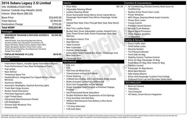 2016 Subaru Legacy 2.5i Limited