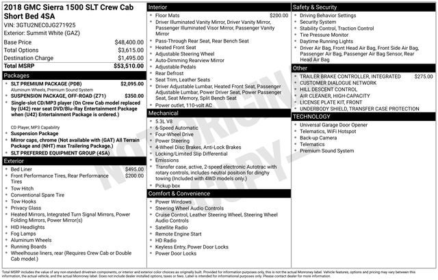Summit White 2018 GMC Sierra 1500 SLT EcoTec3 5.3L V8 6-Speed Automatic Electronic with Overdrive 4WD