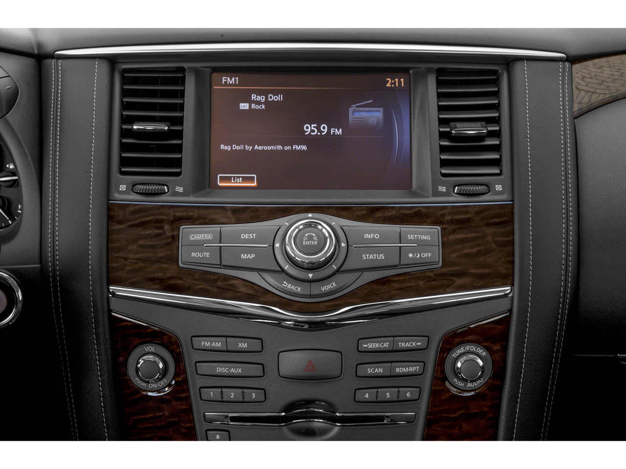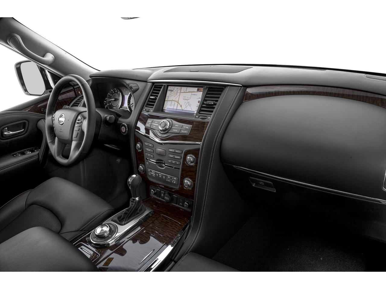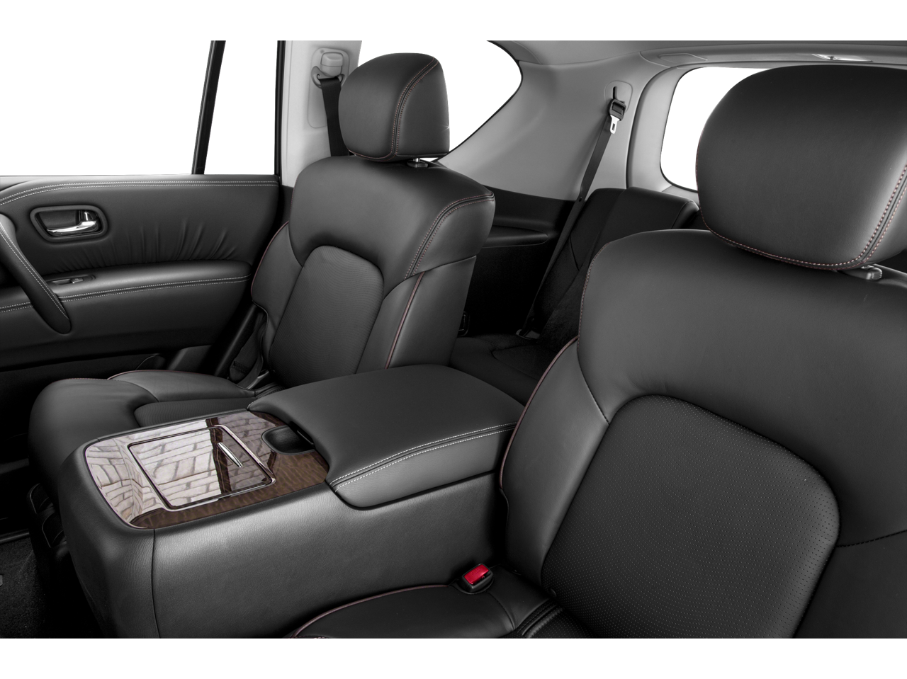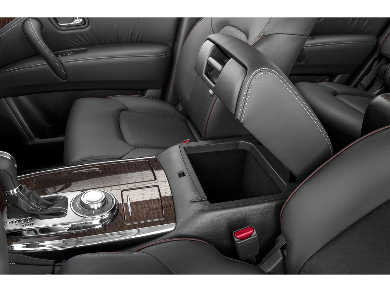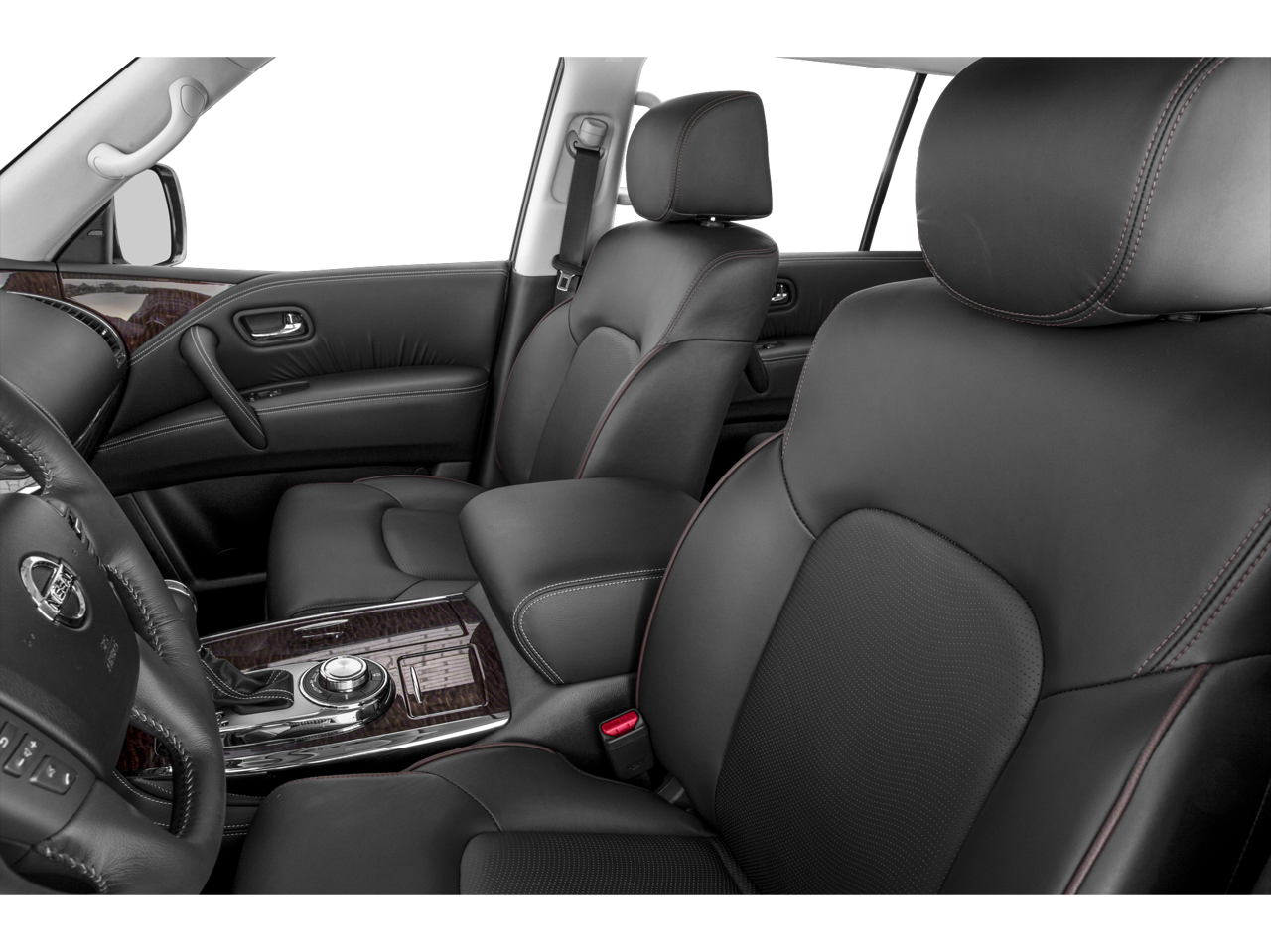 13 Speakers, 2.937 Axle Ratio, 2nd & 3rd Row Carpeted Mats, 3rd row seats: split-bench, 4-Wheel Disc Brakes, A/V remote, ABS brakes, Activation Disclaimer, Air Conditioning, Alloy wheels, AM/FM radio: SiriusXM, Anti-whiplash front head restraints, Auto tilt-away steering wheel, Auto-dimming door mirrors, Auto-dimming Rear-View mirror, Auto-leveling suspension, Automatic temperature control, Brake assist, Bumpers: body-color, Cargo Package, CD player, Delay-off headlights, Driver door bin, Driver vanity mirror, Dual front impact airbags, Dual front side impact airbags, Electronic Stability Control, Emergency communication system: NissanConnect Services, Four wheel independent suspension, Front anti-roll bar, Front Bucket Seats, Front Center Armrest, Front dual zone A/C, Front fog lights, Front reading lights, Fully automatic headlights, Garage door transmitter: HomeLink, Headphones, Heated & Cooled Front Bucket Seats w/Driver Memory, Heated door mirrors, HEATED FRONT SEATS, Heated rear seats, Heated steering wheel, Illuminated entry, Illuminated Kick Plates, Lane Departure Warning System, Leather Shift Knob, Leather-Appointed Seat Trim, Low tire pressure warning, Memory seat, NAVIGATION, Occupant sensing airbag, Outside temperature display, Overhead airbag, Overhead console, Panic alarm, Passenger door bin, Passenger vanity mirror, Power door mirrors, Power driver seat, Power Liftgate, Power moonroof, Power passenger seat, Power steering, Power windows, Radio data system, Radio: Bose AM/FM/SXM/CD/MP3/HD Radio, Rain sensing wipers, Rear air conditioning, Rear anti-roll bar, Rear reading lights, Rear seat center armrest, Rear window defroster, Rear window wiper, Reclining 3rd row seat, Remote keyless entry, Roof rack: rails only, Roof Rail Cross Bars, Security system, Special Paint - Pearl White, Speed control, Speed-sensing steering, Speed-Sensitive Wipers, Split folding rear seat, Spoiler, Steering wheel memory, Steering wheel mounted audio controls, Tachometer, Telescoping steering wheel, Tilt steering wheel, Traction control, Trip computer, Turn signal indicator mirrors, Variably intermittent wipers, Ventilated front seats, Voltmeter, Wheels: 20 Machine-Faced Chrome w/Tinted CC.