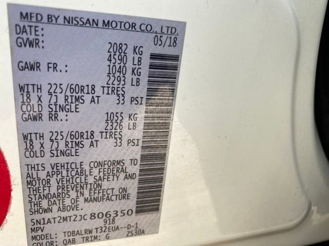18 Alloy Wheels, 4-Wheel Disc Brakes, 6.386 Axle Ratio, 9 Speakers, ABS brakes, Air Conditioning, Alloy wheels, AM/FM radio: SiriusXM, Anti-whiplash front head restraints, Apple CarPlay/Android Auto, Auto High-beam Headlights, Auto-dimming Rear-View mirror, Automatic temperature control, Blind Spot Warning, Brake assist, Bumpers: body-color, CD player, Delay-off headlights, Driver door bin, Driver vanity mirror, Dual front impact airbags, Dual front side impact airbags, Electronic Stability Control, Emergency communication system: NissanConnect Services, Floor Mats & 2-PC Cargo Area Protector, Four wheel independent suspension, Front anti-roll bar, Front Bucket Seats, Front Center Armrest w/Storage, Front dual zone A/C, Front fog lights, Front reading lights, Fully automatic headlights, Garage door transmitter: HomeLink, Heated door mirrors, Heated front seats, Heated steering wheel, Illuminated entry, Leather Appointed Seat Trim, Leather Shift Knob, Low tire pressure warning, March SOP Spec, Memory seat, Navigation System, Occupant sensing airbag, Outside temperature display, Overhead airbag, Overhead console, Panic alarm, Passenger door bin, Passenger vanity mirror, Power door mirrors, Power driver seat, Power Liftgate, Power steering, Power windows, Quick Comfort Heated Front Bucket Seats, Radio data system, Radio: AM/FM/CD/AUX NissanConnect w/Navigation, Rear anti-roll bar, Rear seat center armrest, Rear window defroster, Rear window wiper, Remote keyless entry, Roof rack: rails only, Security system, Speed control, Speed-sensing steering, Split folding rear seat, Spoiler, Steering wheel mounted audio controls, Tachometer, Telescoping steering wheel, Tilt steering wheel, Traction control, Trip computer, Turn signal indicator mirrors, Variably intermittent wipers.