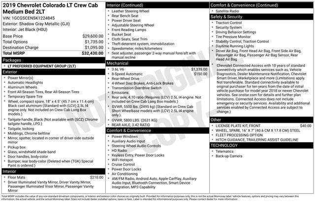 Clean CARFAX. Shadow Gray Metallic 2019 Chevrolet Colorado LT V6 8-Speed Automatic RWD