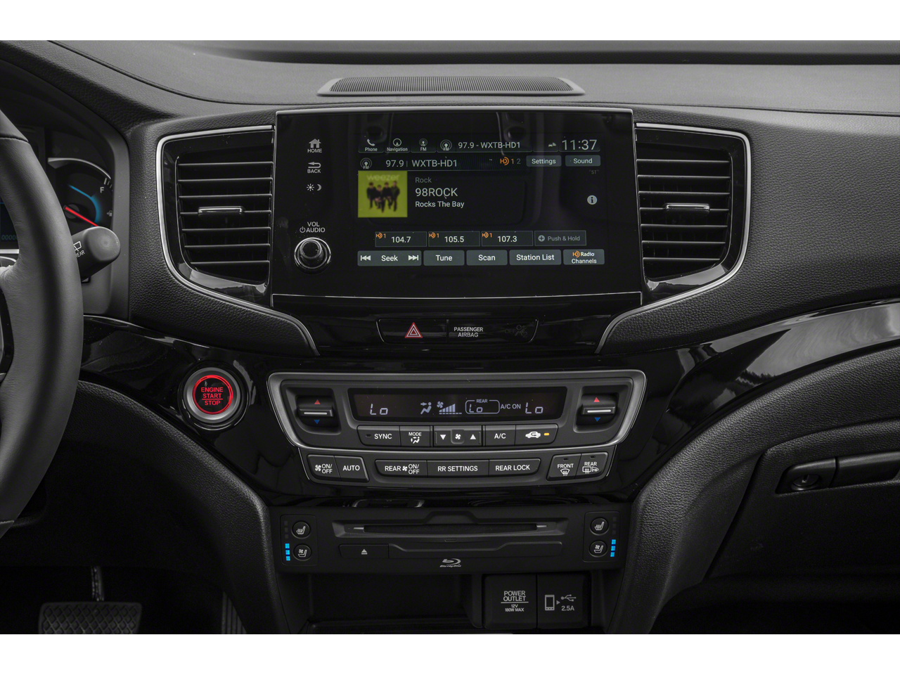 - Radio: AM/FM Premium Audio System -inc: 590-watts, 10 speakers including subwoofer, Bluetooth® HandsFreeLink, Bluetooth® streaming audio, MP3/auxiliary input jack, Radio Data System (RDS), Speed-Sensitive Volume Compensation (SVC), USB smartphone/USB audio interface w/2.5-amp port in front console, USB charging port w/2.5-amp port in center console and 2nd-row (2 ports), 8" display audio w/high-resolution electrostatic touch-screen and customizable feature settings, HondaLink, CabinControl remote compatibility, Apple CarPlay integration, Android Auto integration, SMS text message function, SiriusXM radio, HD Radio, Honda Satellite-Linked Navigation System w/voice recognition, Honda HD Digital Traffic 2nd-row HDMI interface and multi-zone audio