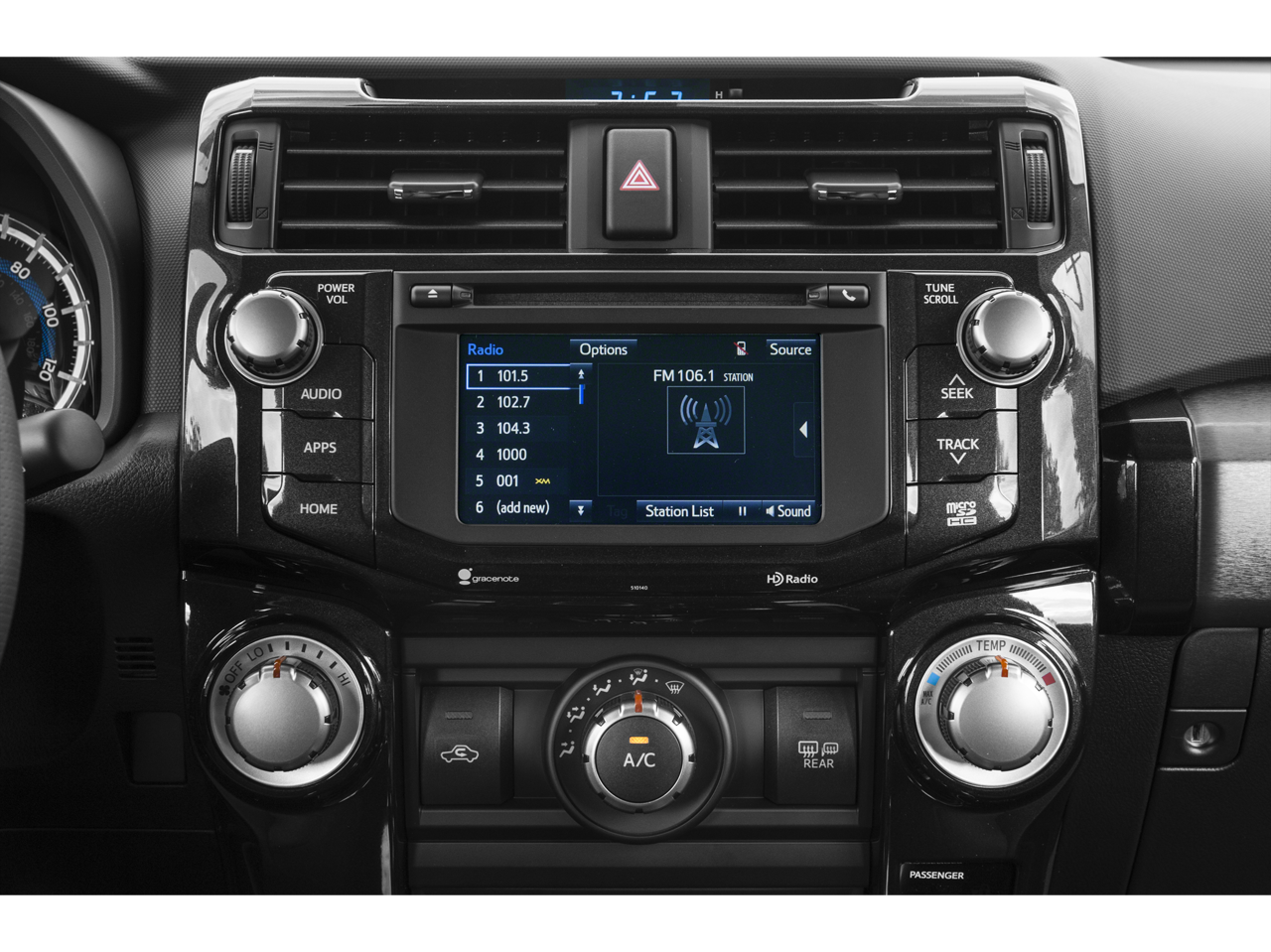 • Radio: Entune Premium Audio w/Navigation -inc: Entune App Suite, 6.1" high-resolution touch-screen w/split-screen display, AM/FM cache radio, HD Radio, CD player, 8-speakers, auxiliary port, USB 2.0 port w/iPod connectivity and control, advanced voice recognition, hands-free phone capability, phone book access and music streaming via Bluetooth wireless technology, Siri Eyes Free, HD Radio predictive traffic and Doppler weather overlay and SiriusXM satellite radio w/3-month all access trial Access to Entune services is subscription free. See toyota.com/entune for details.