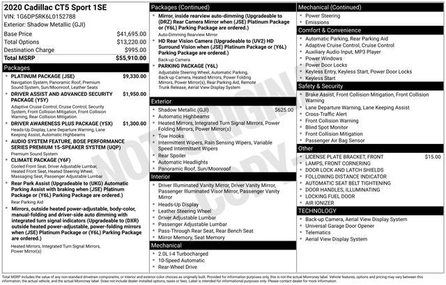 This 2020 Cadillac CT5 Sport is a true masterpiece, blending exceptional performance, refined luxury, and cutting-edge technology. Experience the allure of this remarkable vehicle and schedule a test drive today. We're confident you'll be captivated by its unparalleled driving dynamics and sophisticated charm.