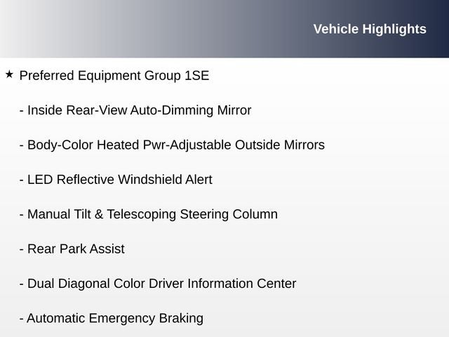 - Mirrors, outside heated power-adjustable, body-color, manual-folding and driver-side auto dimming with integrated turn signal indicators (Upgradeable to (DXR) outside heated power-adjustable, power-folding mirrors when (JSE) Platinum Package or (Y6L) Parking Package are ordered.)