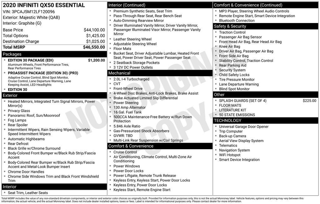 2020 INFINITI QX50 ESSENTIAL