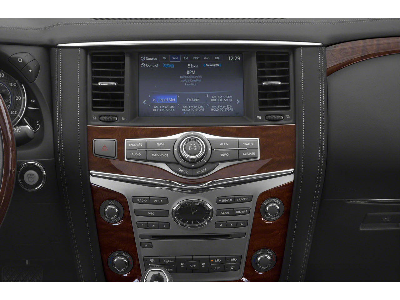 - Radio: AM/FM/HD w/Single In-Dash CD Player & MP3 -inc: INFINITI controller w/dual HD touch-screen, 8-inch upper and 7-inch lower displays, INFINITI navigation w/lane guidance and 3D building graphics w/INFINITI InTouch 4-year complimentary services select and 1-year services premier, INFINITI voice recognition for audio, navigation, Bluetooth® and vehicle information systems, over the air updates for INFINITI InTouch and maps, Siri Eyes Free, Apple CarPlay and Android Auto, SiriusXM radio w/3-month complimentary trial access, SiriusXM Traffic w/real-time traffic information and 4-year complimentary trial access, SiriusXM Travel Link w/4-year complimentary trial access to weather, fuel prices, stocks prices, sport scores, movie listings and parking, Bluetooth® hands-free phone system and audio streaming, hands-free text messaging assistant, HD radio technology, Bose 13-speaker premium sound system w/driver's audio stage, Radio Data System, speed-sensitive volume control, 2 USB ports for compatible devices for audio streaming