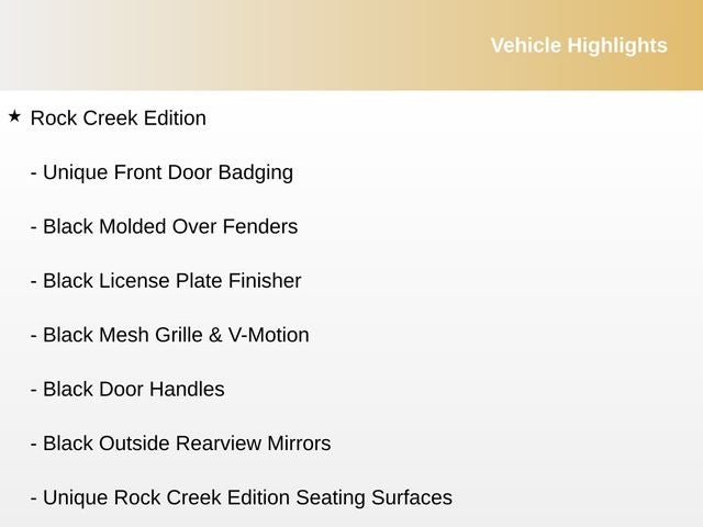 • Rock Creek Edition with unique black exterior accents and premium interior trim