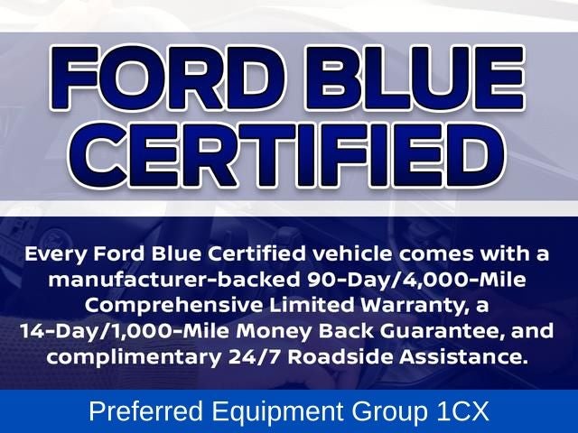 Certified. Certification Program Details: Factory-trained technicians have thoroughly inspected and reconditioned this vehicle to meet the stringent Ford Blue Advantage standards. Benefits include: 3-month/4,000-mile* Comprehensive Limited Warranty Coverage 139-point Vehicle Inspection 24-Hour Roadside Assistance 11,000 FordPass Rewards Points Can be used toward scheduled maintenance** 3-month SiriusXM introductory subscription** Carfax Vehicle History Report *Whichever comes first **Ask dealer for details