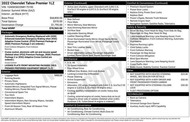- which removes heated steering wheel. See the window label for the features on a specific vehicle.)