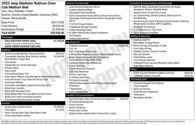 We invite you to visit our showroom and experience the exceptional 2022 Jeep Gladiator Rubicon for yourself. Our knowledgeable sales team is ready to answer any questions you may have and help you discover the perfect vehicle to suit your adventurous lifestyle. Don't miss out on the opportunity to own this remarkable Jeep Gladiator Rubicon – schedule a test drive today and let the journey begin.