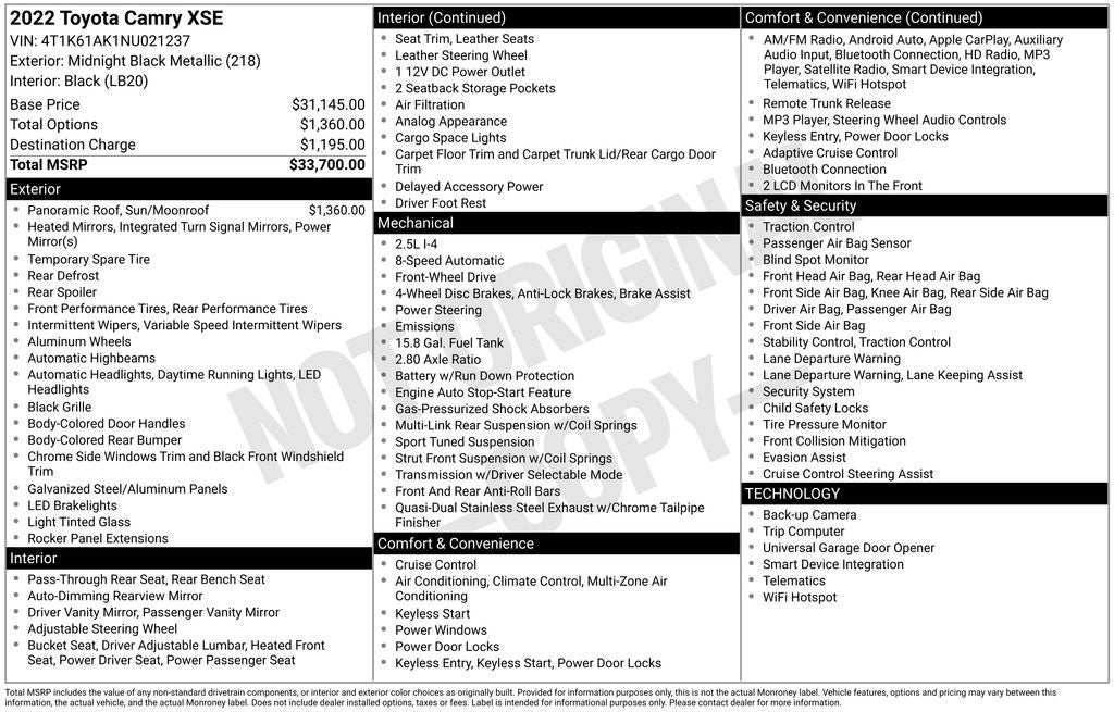If provided, Advertised Price EXCLUDES all optional dealer offered items, accessories, or product addendums optionally selected by the purchaser, applicable official taxes, charges and fees, and a $436 documentation fee. By submitting your information, you consent to receive all forms of communication including but not limited to phone, text, email, mail, etc. Message and data rates may apply. Consent to these terms is not a condition of purchase. You may opt out at any time. MPG based on model year EPA mileage ratings. Use for comparison purposes only. Discounts and incentives may be available to all of the general public, or may have certain conditions, such as being financed through a required specific lender, call Dealer for details. Certain used vehicles may be subject to important Wholesale to the Public disclosures provided to you prior to purchase; please consider carefully before your purchase decision. The Lifetime Limited Powertrain Warranty is offered on select vehicle makes and models. Not all vehicles qualify. Ask your dealership sales representative for details.
