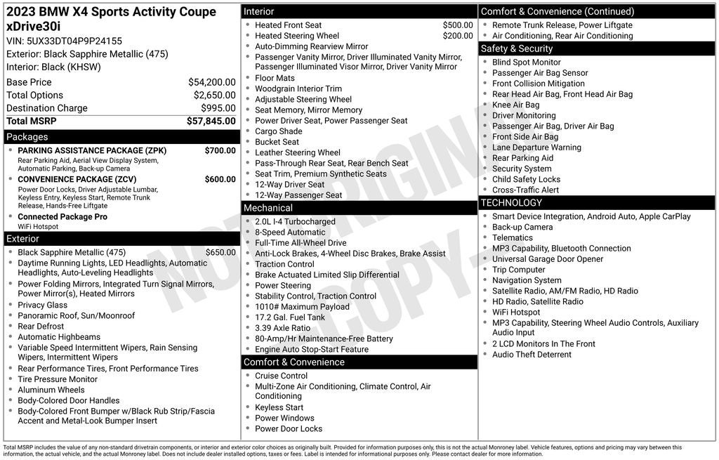 Elevate your driving experience and make a statement with this exceptional 2023 BMW X4 xDrive30i. Schedule a test drive today and discover the unparalleled blend of performance, luxury, and technology that this SUV has to offer.