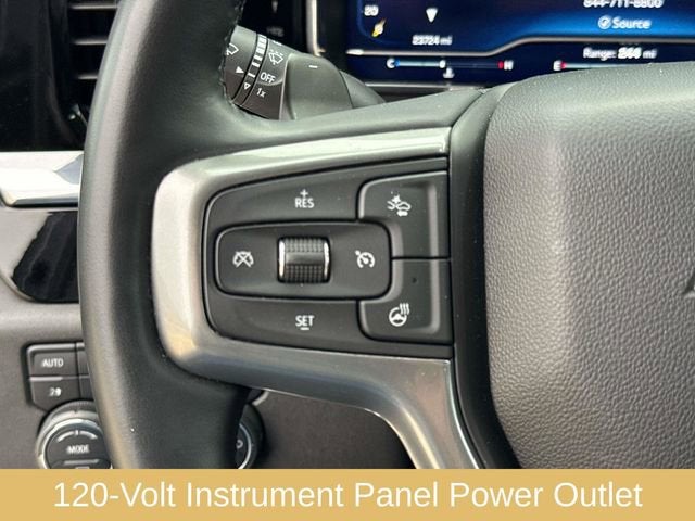 But the features don't stop there. This Silverado also boasts a power sunroof, heated front seats, a heated steering wheel, and a 12.3-inch reconfigurable digital instrument cluster. The multi-flex tailgate and off-road assist steps further enhance its versatility and capability.