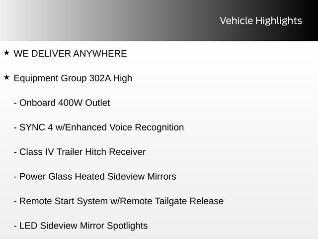 - SYNC 4 -inc: 8" LCD capacitive touchscreen w/swipe capability, wireless phone connection, cloud connected, AppLink w/App catalog, 911 Assist, Apple CarPlay and Android Auto compatibility and digital owners manual