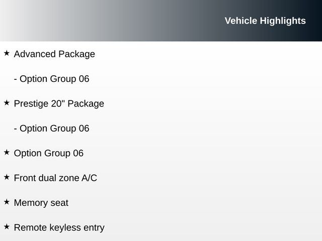 Stepping inside, you'll be enveloped in a world of luxury and convenience. The Prestige trim level offers a wealth of premium amenities, including:
