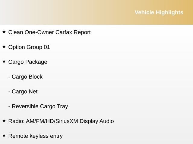• Cargo Package, including Reversible Cargo Tray, Cargo Net, and Cargo Block