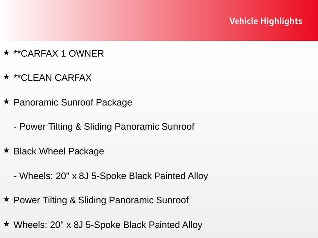 - Wheels: 20" x 8J 5-Spoke Black Painted Alloy