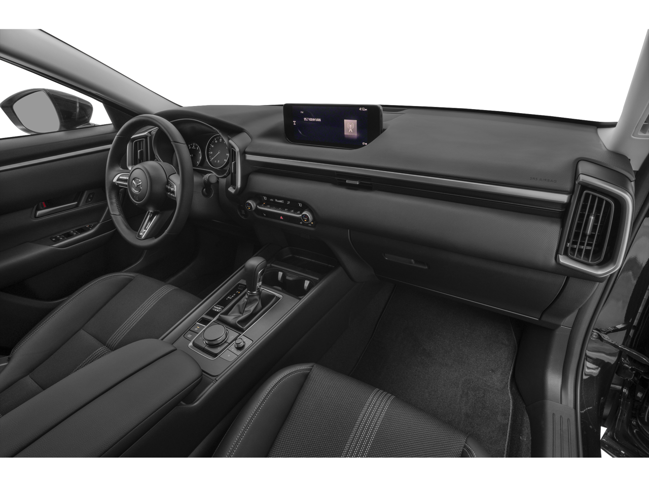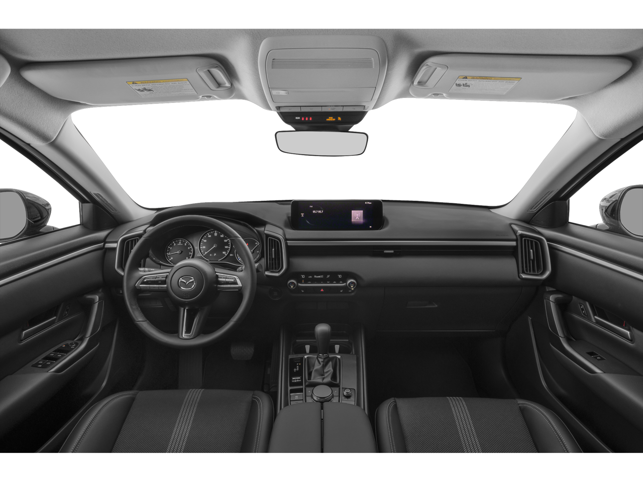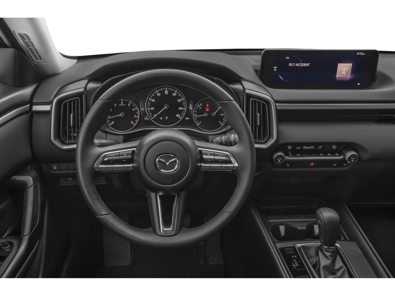- AM/FM radio, Radio data system, Air Conditioning, Power driver seat, Power steering, Power windows, Remote keyless entry, Steering wheel mounted audio controls, Speed-sensing steering, Traction control, 4-Wheel Disc Brakes, ABS brakes, Dual front impact airbags, Dual front side impact airbags, Emergency communication system: MAZDA CONNECT, Front anti-roll bar, Front wheel independent suspension, Knee airbag, Low tire pressure warning, Occupant sensing airbag, Overhead airbag, Brake assist, Auto High-beam Headlights, Delay-off headlights, Fully automatic headlights, Panic alarm, Speed control, Heated door mirrors, Spoiler, Leather Shift Knob, Leather steering wheel, Outside temperature display, Overhead console, Rear seat center armrest, Tachometer, Telescoping steering wheel, Tilt steering wheel, Trip computer, Front Bucket Seats, Front Center Armrest, Half Leatherette Seat Trim, Split folding rear seat, Rain sensing wipers, Rear window wiper, Variably intermittent wipers