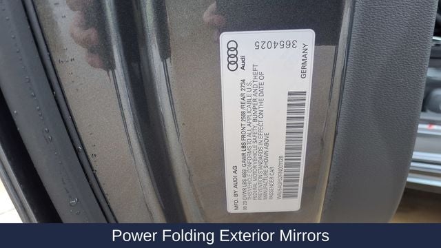 - Convenience Package -inc: Alarm System w/Motion Sensors, Auto-Dimming Exterior Mirrors w/Memory, SiriusXM w/360L, 3-month Platinum Plan trial subscription, Audi Advanced Key, keyless entry doors and trunk, Audi Side Assist w/Pre Sense Rear, Driver Seat Memory