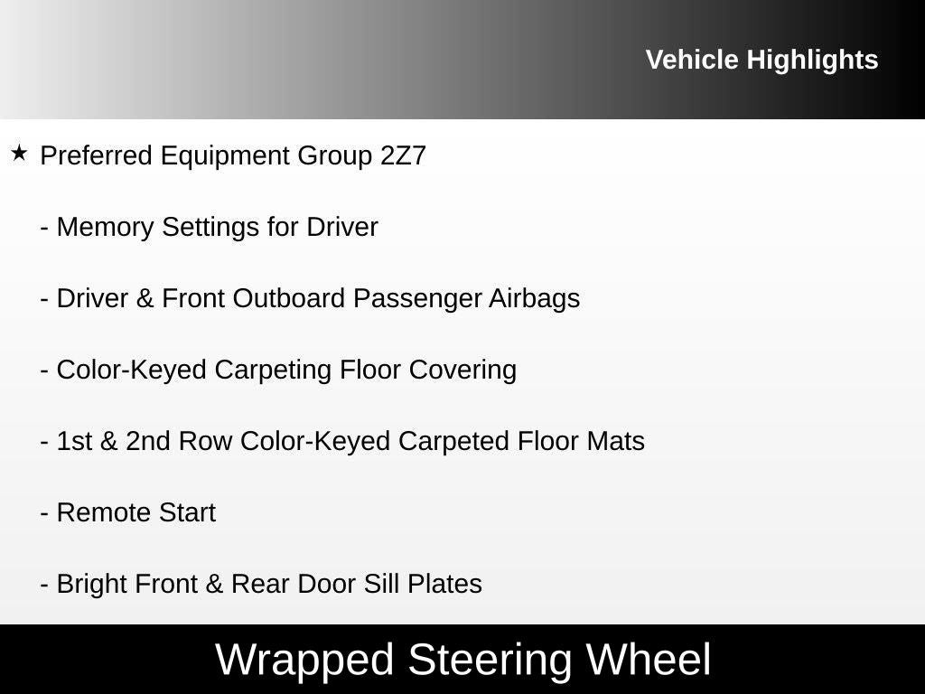 4WD, Black Leather, 1st & 2nd Row Color-Keyed Carpeted Floor Mats, 2-Speed Active Electronic AutoTrac Transfer Case, Auto-Dimming Inside Rear-View Mirror, Black Tubular Assist Steps, Bose 9-Speaker Stereo Audio System Feature, Bright Front & Rear Door Sill Plates, Color-Keyed Carpeting Floor Covering, Driver & Front Outboard Passenger Airbags, Enhanced Driver Information Center, Floor Console w/Storage Area, Front High-Approach Angle Fascia, Hands-Free Rear Power Programmable Liftgate, Hill Descent Control, LED Daytime Running Lamps, Memory Settings for Driver, Preferred Equipment Group 2Z7, Red Horizontal-Mounted Recovery Hooks, Remote Start, SiriusXM w/360L, Universal Home Remote, Wireless Charging, Wrapped Steering Wheel.