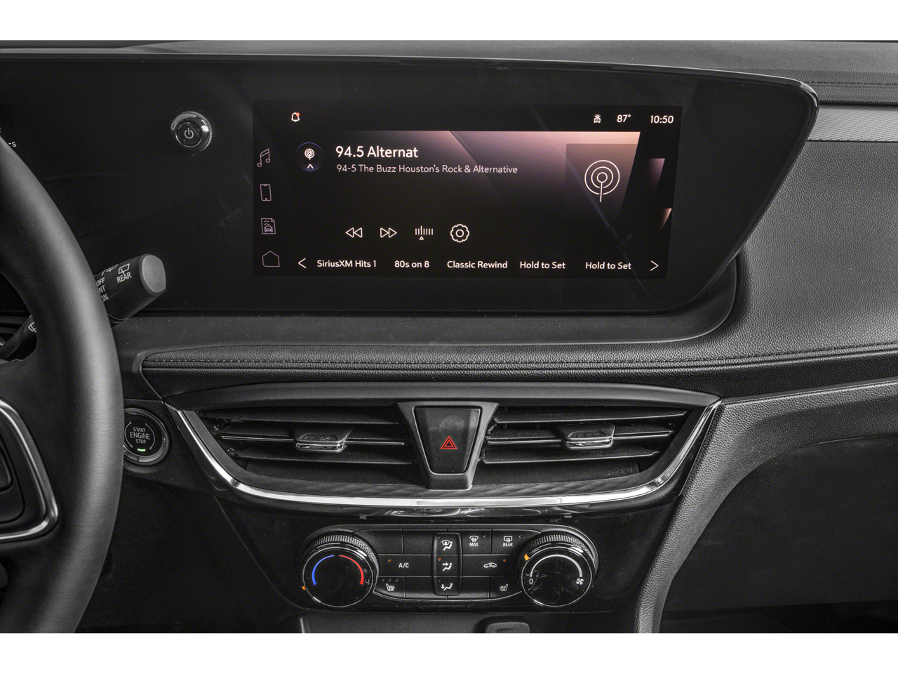 2 USB Ports (1 Type-A, 1 Type-C), 4-Way Manual Passenger Seat Adjuster, 4-Wheel Disc Brakes, 5.45 Final Drive Axle Ratio, 6 Speakers, 6-Way Manual Driver Seat Adjuster, ABS brakes, Air Conditioning, Alloy wheels, AM/FM radio: SiriusXM, Auto High-beam Headlights, Automatic temperature control, Brake assist, Bumpers: body-color, Compass, Delay-off headlights, Driver door bin, Driver vanity mirror, Dual front impact airbags, Dual front side impact airbags, Electronic Stability Control, Emergency communication system: OnStar and Buick connected services capable, Enhanced Performance 6-Speaker System, Front anti-roll bar, Front Bucket Seats, Front Center Armrest, Front reading lights, Front wheel independent suspension, Fully automatic headlights, Heated door mirrors, Illuminated entry, Knee airbag, Leatherette Seat Trim, Low tire pressure warning, Occupant sensing airbag, Outside temperature display, Overhead airbag, Overhead console, Panic alarm, Passenger door bin, Passenger vanity mirror, Power door mirrors, Power steering, Power windows, Preferred Equipment Group 1SD, Radio data system, Radio: Audio System w/AM/FM, Rear reading lights, Rear side impact airbag, Rear window defroster, Rear window wiper, Remote keyless entry, Ride & Handling Suspension, Security system, SiriusXM Trial Subscription, Speed control, Speed-sensing steering, Split folding rear seat, Spoiler, Sport steering wheel, Steering wheel mounted audio controls, Tachometer, Telescoping steering wheel, Tilt steering wheel, Traction control, Trip computer, Variably intermittent wipers, Wheels: 18 Gloss Black Aluminum, Wireless Apple CarPlay/Wireless Android Auto.