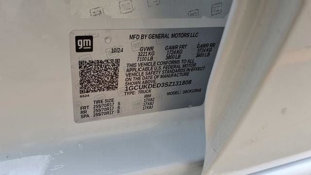 10-Way Power Driver Seat w/Lumbar, 12.3 Multicolor Reconfigurable Digital Display, 120-Volt Bed Mounted Power Outlet, 120-Volt Interior Power Outlet, 170 Amp Alternator, 220 Amp Alternator, 3.23 Rear Axle Ratio, 4-Wheel Disc Brakes, 40/20/40 Front Split-Bench Seat, 6 Speakers, 6-Speaker Audio System, ABS brakes, Air Conditioning, All-Star Edition, Alloy wheels, AM/FM radio: SiriusXM with 360L, Apple CarPlay/Android Auto, Auto High-beam Headlights, Auto-Locking Rear Differential, Automatic Emergency Braking, Automatic temperature control, Auxiliary External Transmission Oil Cooler, Bluetooth® For Phone, Brake assist, Bumpers: chrome, Chrome Mirror Caps, Cloth Seat Trim, Color-Keyed Carpeting Floor Covering, Compass, Convenience Package, Deep-Tinted Glass, Delay-off headlights, Driver door bin, Driver vanity mirror, Dual front impact airbags, Dual front side impact airbags, Dual Rear USB Ports (Charge Only), Dual-Zone Automatic Climate Control, Electric Rear-Window Defogger, Electronic Cruise Control, Electronic Stability Control, Emergency communication system: OnStar, External Engine Oil Cooler, EZ Lift Power Lock & Release Tailgate, Following Distance Indicator, Forward Collision Alert, Front anti-roll bar, Front Center Armrest w/Storage, Front dual zone A/C, Front Frame-Mounted Black Recovery Hooks, Front License Plate Kit, Front Pedestrian Braking, Front reading lights, Front Rubberized Vinyl Floor Mats, Front wheel independent suspension, Fully automatic headlights, HD Rear Vision Camera, Heated door mirrors, Heated Driver & Front Outboard Passenger Seats, HEATED FRONT SEATS, Heated Power-Adjustable Outside Mirrors, Heated Steering Wheel, Heated steering wheel, Hitch Guidance, Illuminated entry, Inside Rear-View Mirror w/Tilt, Integrated Trailer Brake Controller, IntelliBeam Automatic High Beam On/Off, Keyless Open & Start, Lane Keep Assist w/Lane Departure Warning, LED Cargo Area Lighting, Low tire pressure warning, Manual Tilt/Telescoping Steering Column, Occupant sensing airbag, OnStar Services Capable, Outside temperature display, Overhead airbag, Overhead console, Panic alarm, Passenger door bin, Passenger vanity mirror, Power door mirrors, Power driver seat, Power Front Windows w/Driver Express Up/Down, Power Front Windows w/Passenger Express Down, Power Rear Windows w/Express Down, Power steering, Power windows, Preferred Equipment Group 1LT, Premium audio system: Chevrolet Infotainment 3 Premium, Radio data system, Radio: Chevrolet Infotainment 3 Premium System, Rear 60/40 Folding Bench Seat (Folds Up), Rear reading lights, Rear Rubberized-Vinyl Floor Mats, Rear step bumper, Rear window defroster, Remote keyless entry, Remote Start Package, Remote Vehicle Starter System, Security system, SiriusXM w/360L Trial Subscription, Speed control, Speed-sensing steering, Split folding rear seat, Standard Suspension Package, Standard Tailgate, Steering Wheel Audio Controls, Steering wheel mounted audio controls, Tachometer, Teen Driver, Telescoping steering wheel, Theft Deterrent System (Unauthorized Entry), Tilt steering wheel, Tire Pressure Monitoring System, Traction control, Trailering Package, Trip computer, Variably intermittent wipers, Voltmeter, Wheels: 17 x 8 Bright Silver Painted Aluminum, Wi-Fi Hot Spot Capable, Wrapped Steering Wheel.