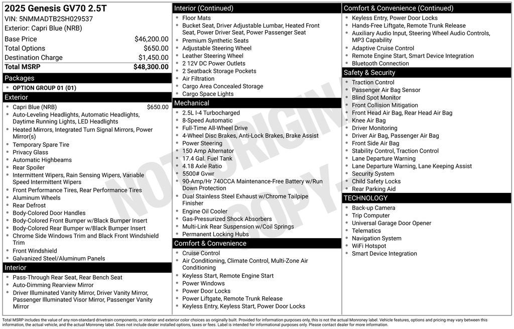 - Vehicle Name: Genesis GV70