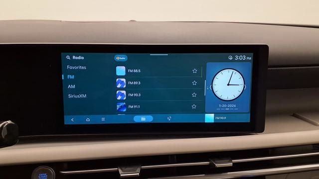 - Radio: AM/FM/HD Audio System -inc: 12.3" color touchscreen display, 6 speakers, SiriusXM satellite radio system (3-month trial subscription), wireless Apple CarPlay and Android Auto integration, controller OTA update capability, Blue Link connected car system and USB connectivity